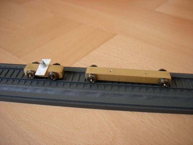 aus einem Messingprofil (Ms 58 12x8) gefertigt wurde, wurde bei den Rädern auf übliche Radsätze der